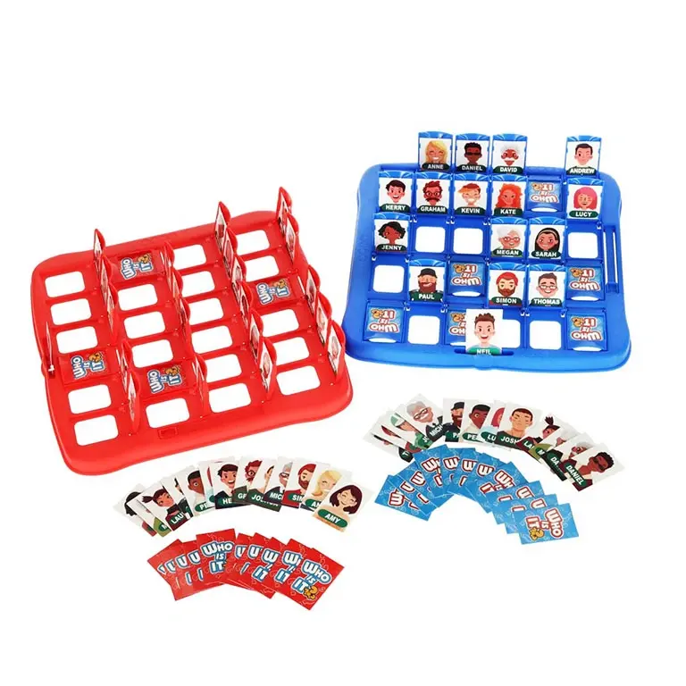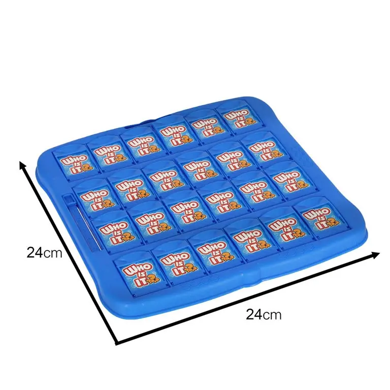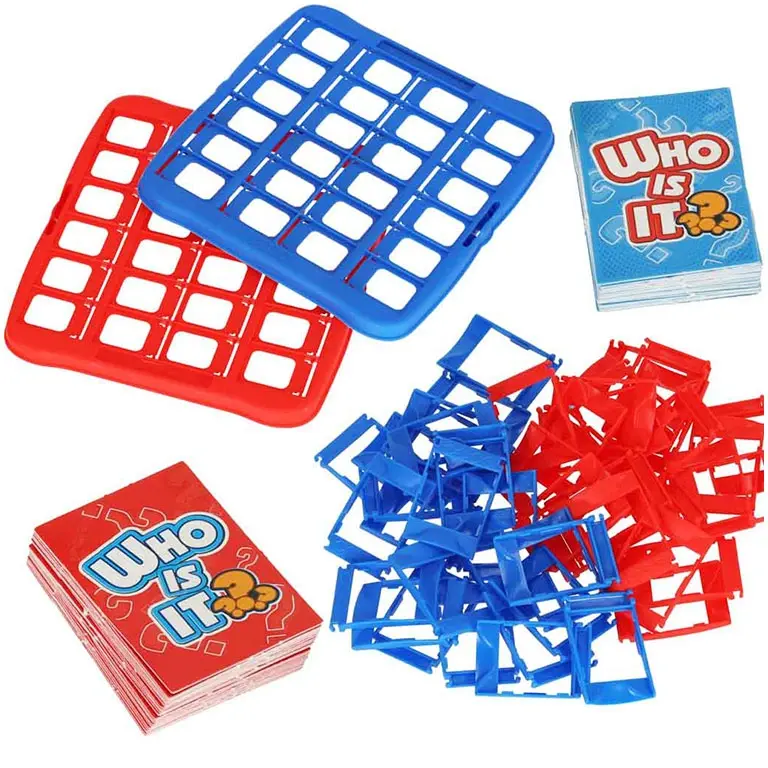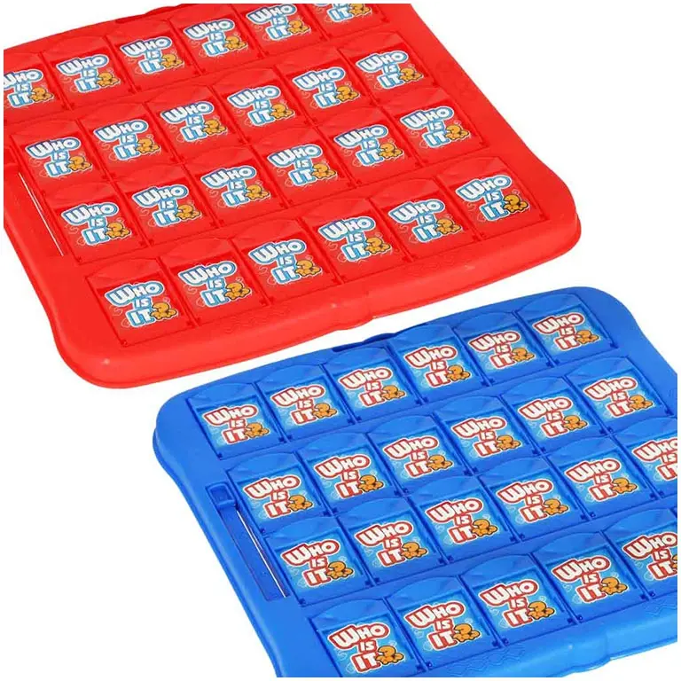 Who Is It ir ļoti populāra spēle pasaulē. Paredzēta diviem spēlētājiem. Ieteicams bērniem vismaz no 4+ gadu vecuma. Komplektā ir iekļauti attēli, rāmīši un divas spēļu pamatnes. Paredzēta diviem spēlētājiem.