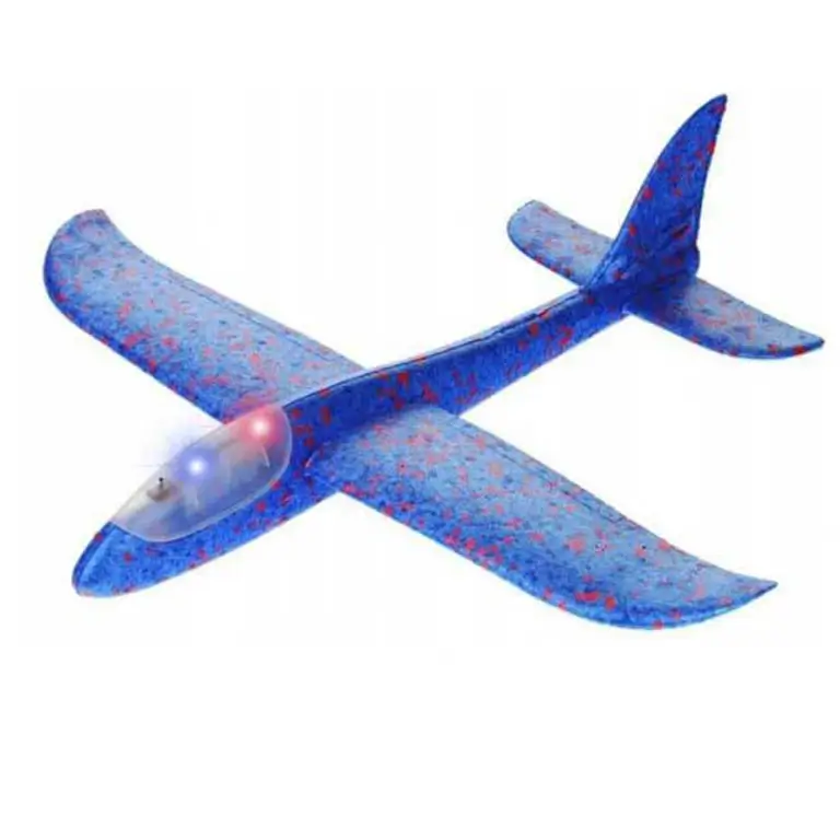 Mūsdienīga putuplasta lidmašīna ar LED gaismiņu efektu. Piemērota āra rotaļām. Putuplasta lidmašīnas izmērs 48 x 49 cm. Viegli saliekama.