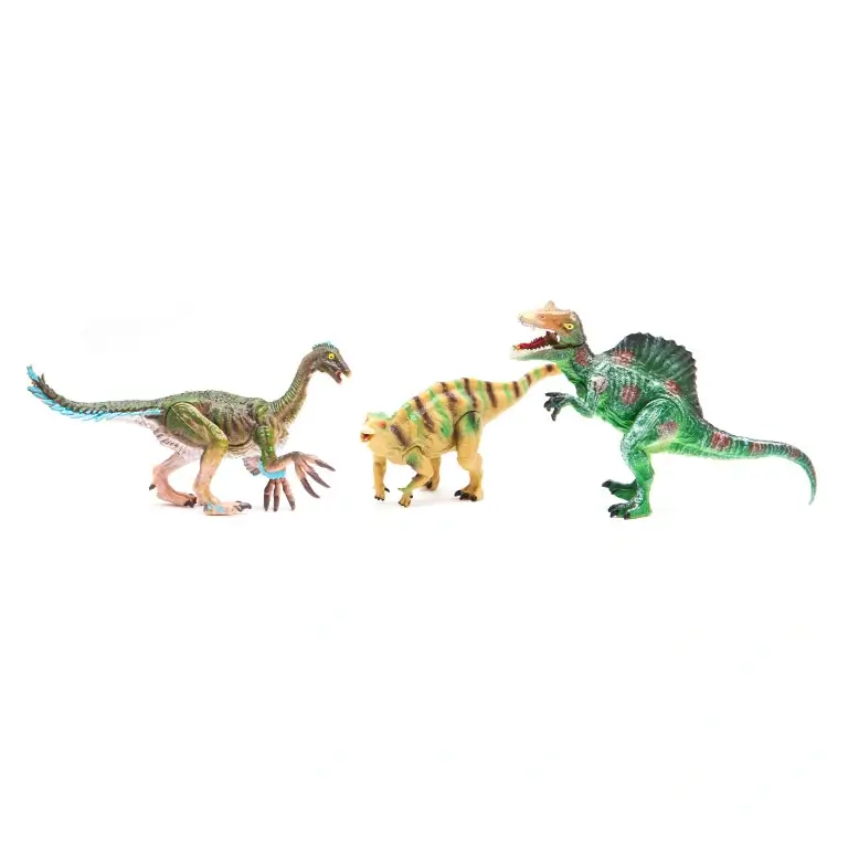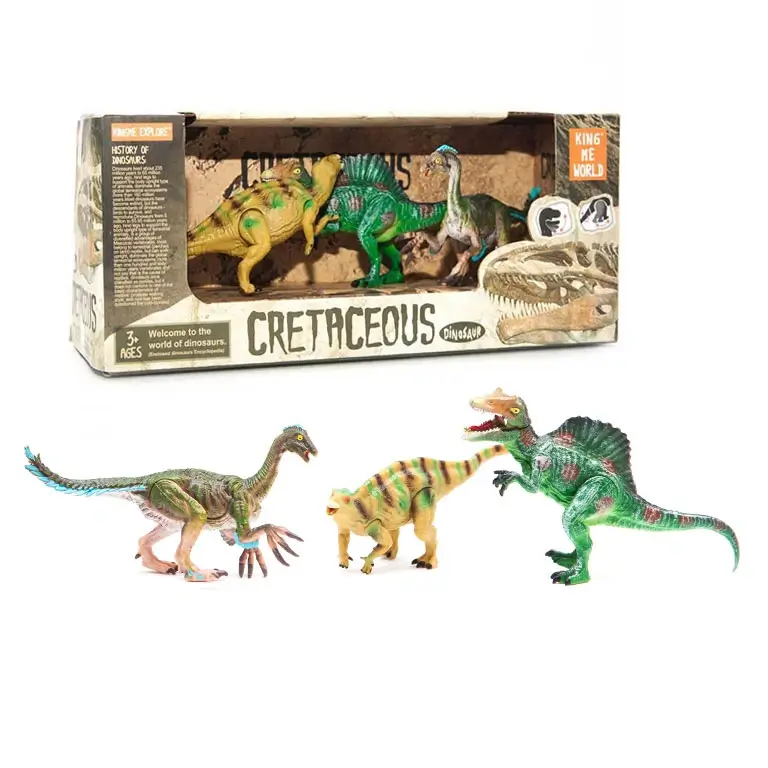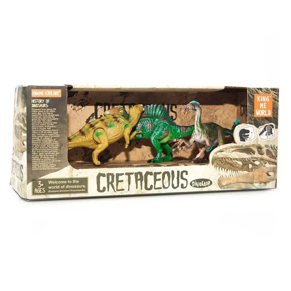 Rotaļu dinozauru komplekts bērniem. Ieteicams bērniem no 3+ gadu vecuma. Komplektā “Cretaceous 3x Wild” ir trīs dažādi dinozauri: Spinozaurs, Thecodontosaurus un Raptor.