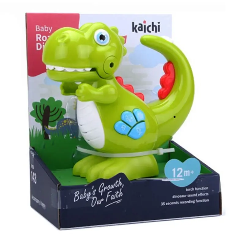 Muzikāla un ļoti daudzveidīga rotaļlieta mazuļiem no 12 mēnešu vecuma. Kaichi rotaļu dinozaurs “Roaring Dinosaur” ir aprīkots ar vairākām melodijām un skaņas efektiem. Uz dinozauriņa sāna ir četras pogas.