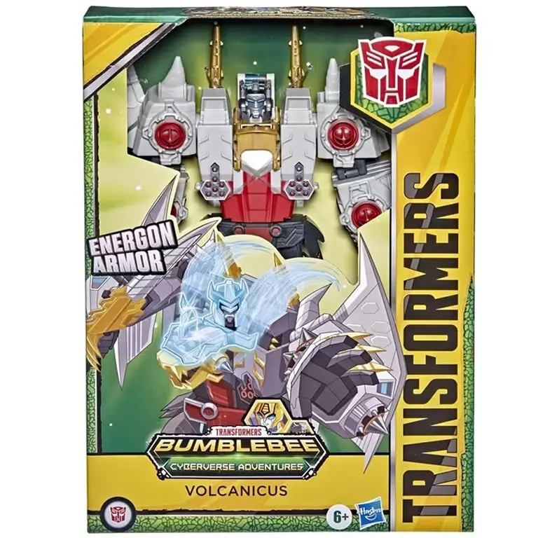 Lielizmēra transformējāms rotaļu robots Transformers Energon Armor vārdā Volcanicus. Ražotājs Hasbro. Robota garums aptuveni 23 cm.