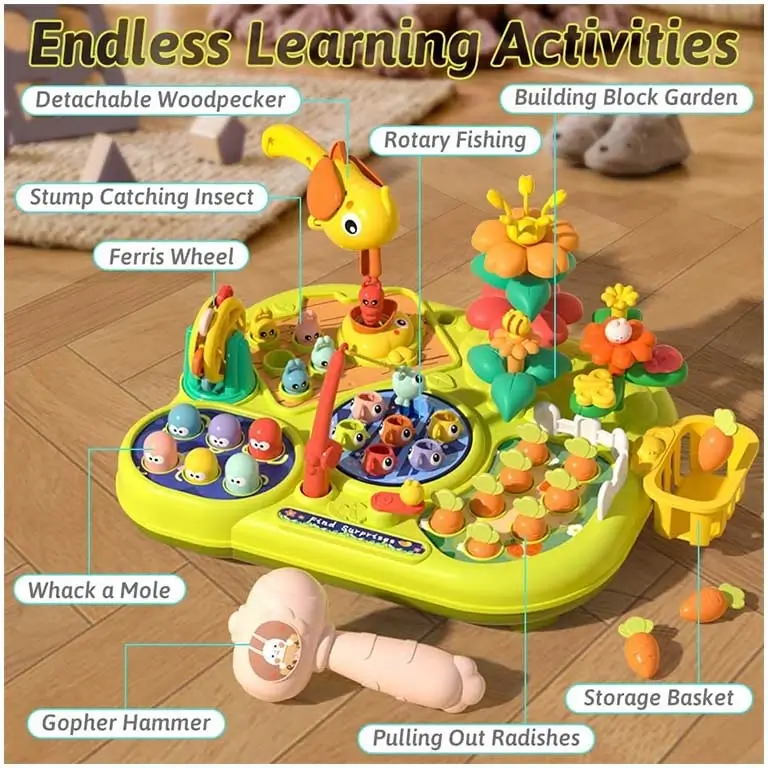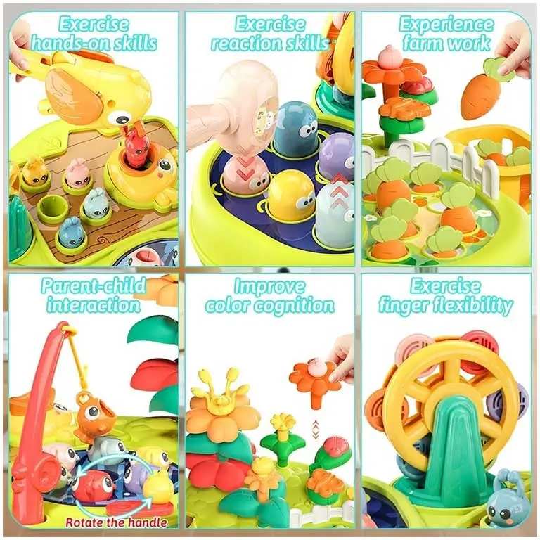 Стол имеет шесть игровых зон. Развивает мелкую моторику рук, ловкость и аккуратность.