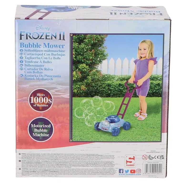 Игрушечная газонокосилка для девочек, которым нравятся мыльные пузыри и фильм Холодное сердце. Компактная, а главное лёгкая, игрушка способная выпускать множество мыльных пузырей!