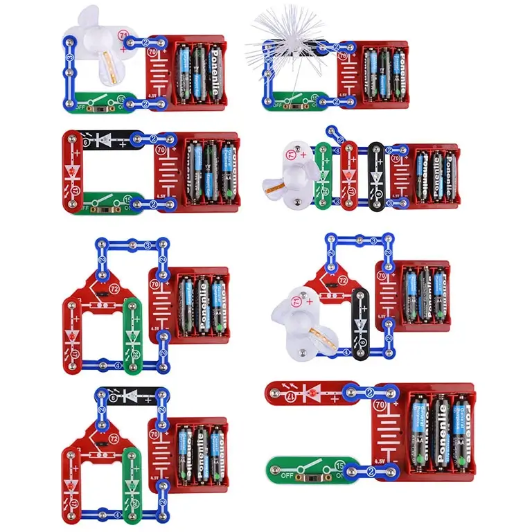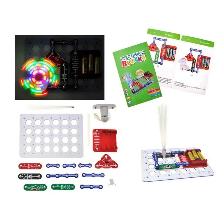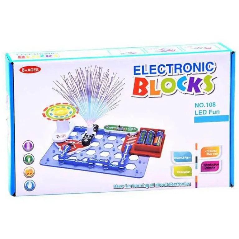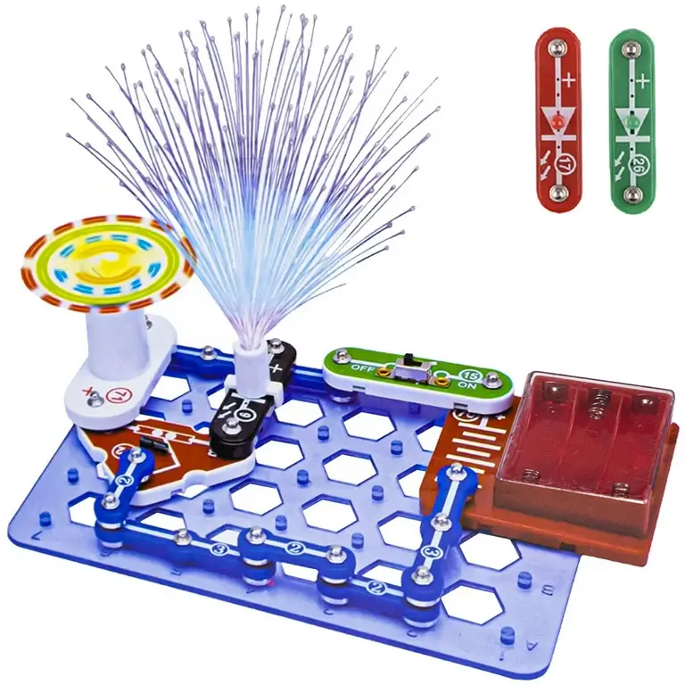 Эта игрушка просто необходима когда ребенок стремиться к знаниям, особенно если в области электроники. У ребенка будет возможность собрать электроцепь для активизации вентилятора или осветительных приборов.