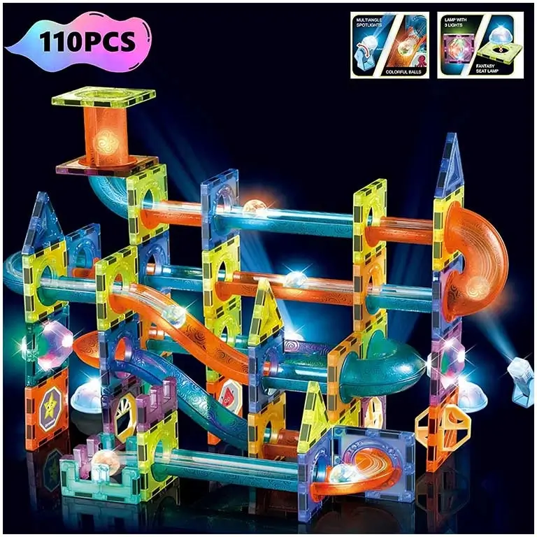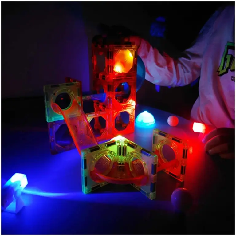 Придумывайте новые конструкции, воплощайте фантазии в реальность! Light Magnetic Blocks – не только магнитный конструктор, но и игра горки Marble Race. Имеются световые эффекты.