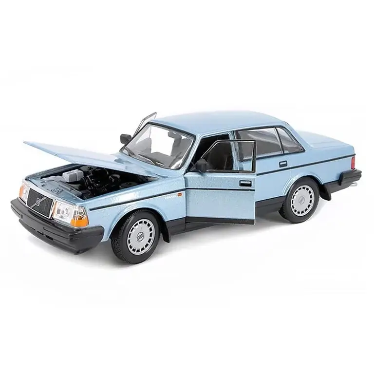 Металлическая модель четырехдверного седана Volvo 240 GL. Автомобиль представлен в масштабе 1 к 24 компанией Welly. У модели открываются передние двери и капот.